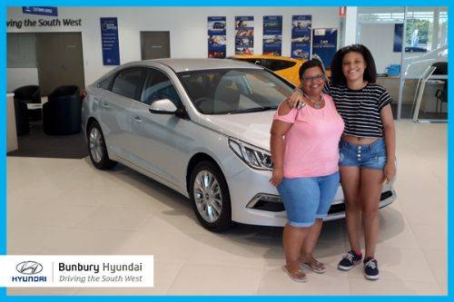 8/09/2016 - Happy customers Avril and her daughter from Dunsborough with her all-new Hyundai Sonata from Bunbury Hyundai.