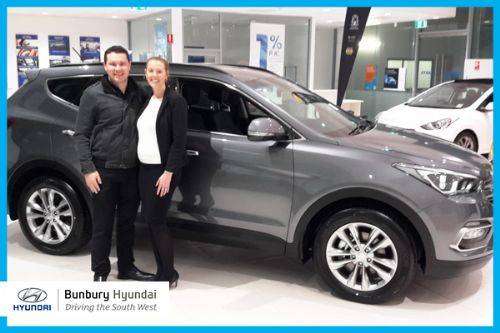 8/09/2016 - Brenton and Melissa from Bunbury with their all-new Hyundai Sante Fe Elite in Titanium Silver from Bunbury Hyundai. Awesome choice!